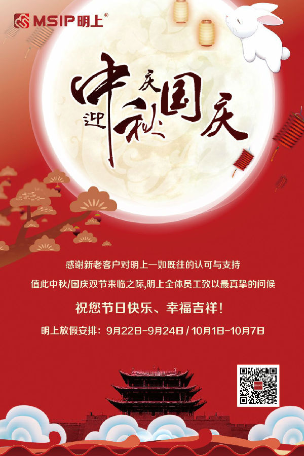 “秋色一輪滿,云衢千里明”,月圓人圓日,讓我們共享盛世美景。武漢明上知識(shí)產(chǎn)權(quán)代理有限公司、佛山明上知識(shí)產(chǎn)權(quán)服務(wù)有限公司全體員工再次向您及您的家人致以節(jié)日的祝福,恭祝您及家人中秋快樂(lè),幸福吉祥!
